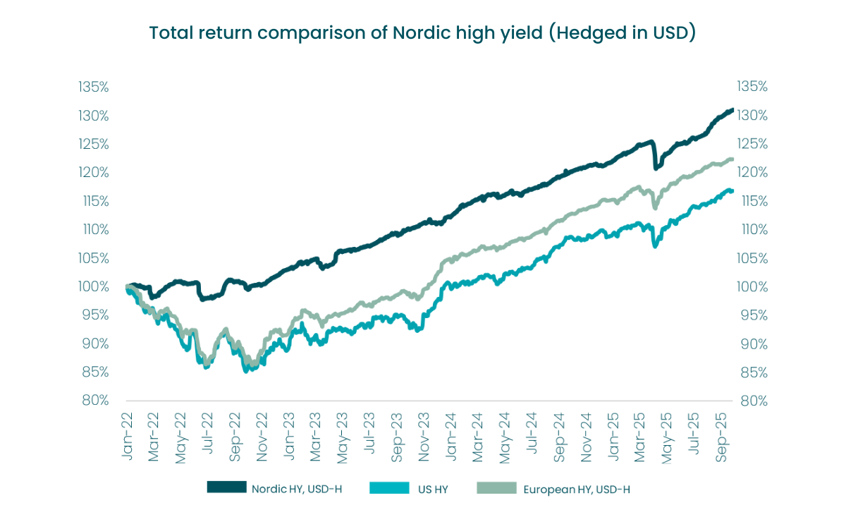 Within a benchmark-free, sector-focused credit approach, Nordic High Yield serves as a component offering short duration, above-average carry, and recurring primary market opportunities.